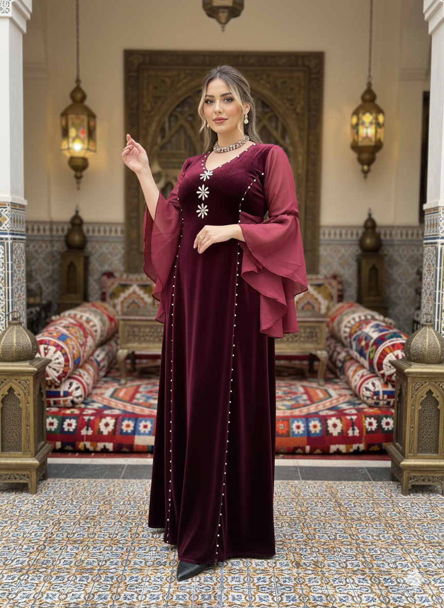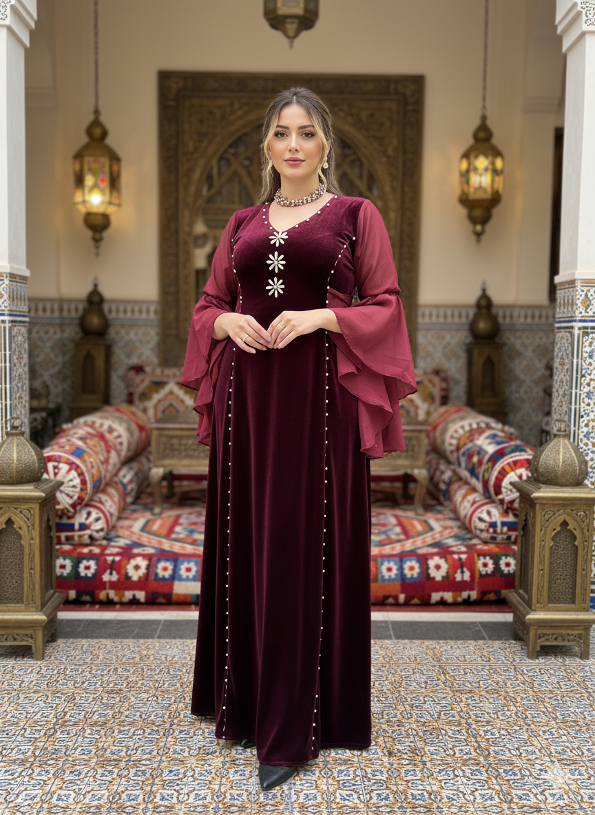 👑✨فستان سلطانة – قطيفة فتون بتفاصيل فاخرة