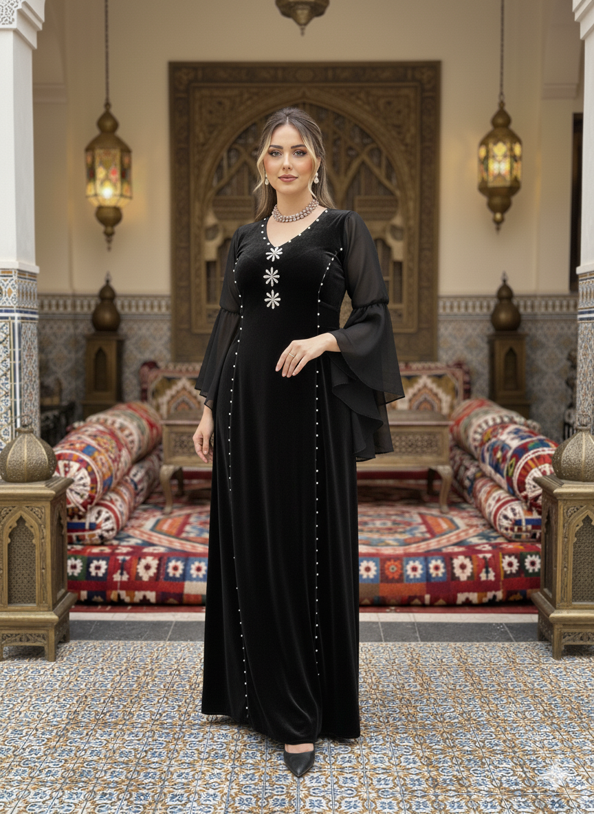 | 👑✨فستان سلطانة – قطيفة فتون بتفاصيل فاخرة | 1 د.ج |